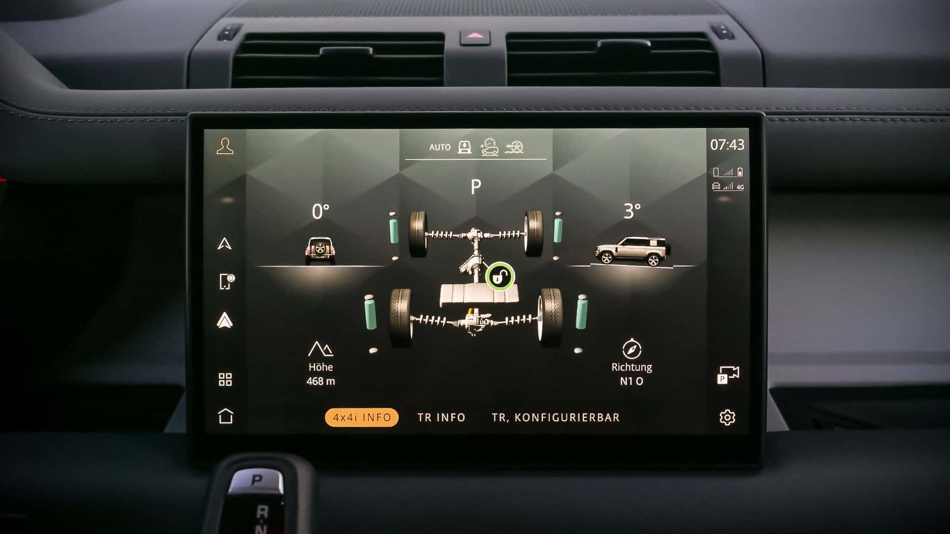 Dazu kommt eine konfigurierbare Variante, bei der bis zu vier individuelle Setups abgespeichert werden können. So lässt sich der Defender fast maßgeschneidert auf Fahrweise und Gelände einstellen. Ergänzt wird das Ganze von den E-Modi Hybrid, EV und Save, die bestimmen, ob der Wagen rein elektrisch, kombiniert oder mit Fokus auf Batteriereserve betrieben wird.