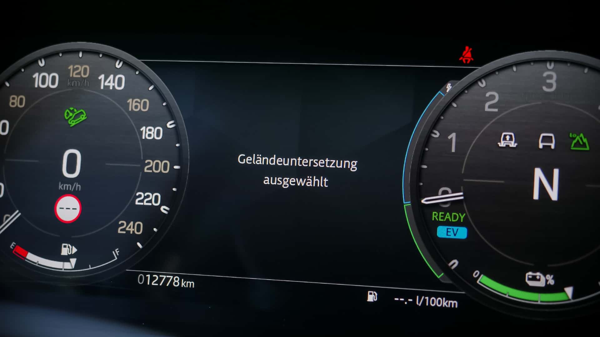 Rein elektrisch fährt der Defender rund 40 bis 45 Kilometer weit – offiziell sind 51 km angegeben. Für Pendlerstrecken in der Stadt reicht das, auf längeren Fahrten springt jedoch schnell der Verbrenner ein. Beim Verbrauch zeigt sich Ernüchterung: Während Land Rover 2,8 Liter im WLTP-Mix verspricht, pendeln sich die Realwerte bei 5,9 (bei regelmäßigen Laden an der Wallbox zu Hause) bis hin zu 11 Litern ein.