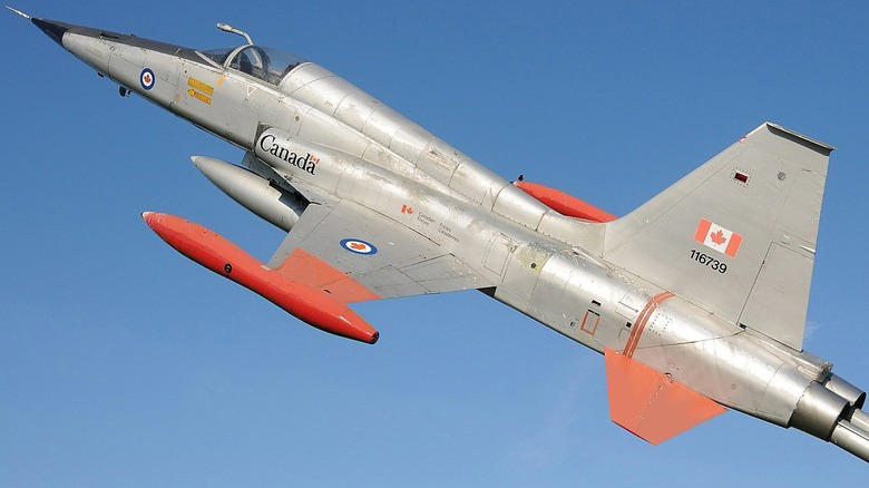 With a pair of GE J8515 turbojet engines, each generating up to 4,300 pounds of thrust, this 50-foot jet had a max takeoff weight of 20,390 pounds, hit a ceiling of 41,000 feet, and explored a range of up to 875 miles. And we saved the best for last: The CF-5D had a supersonic top speed of Mach 1.3. You can drop $2.2 million in cash and millions more for insurance, fuel, and maintenance to find out what it's like to shatter thousands of windows with a sonic boom on the way to being imprisoned. What a wonderful world.