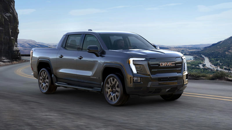 2025 GMC Sierra Elevation EV front 3/4 action shot