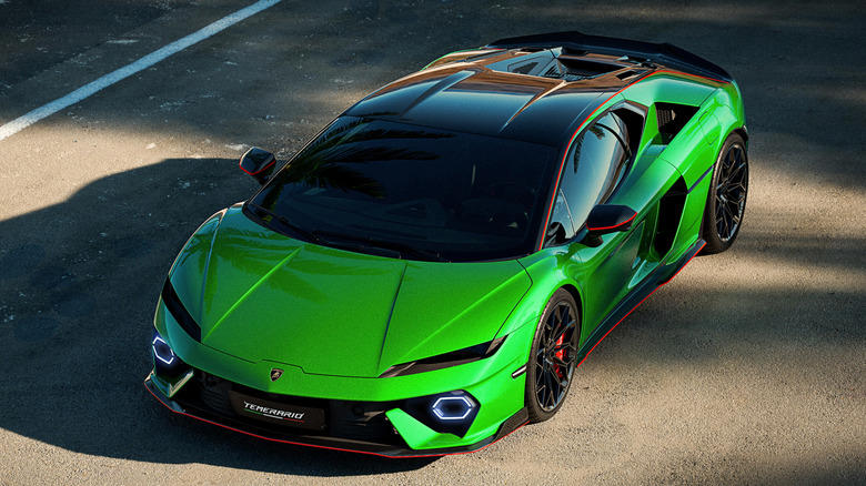 Lamborghini's Temerario, which the company unveiled at 2024's Monterey Car Week, sports an all-new electrified V8 engine, with its 4.0-liter twin-turbos complemented by three electric motors — one between the engine and transmission, and two on each front wheel. Lamborghini claimed that it dropped the V10 because the engine couldn't meet the carmaker's power goals , and the Temerario shows that the decision may have been the right one. The V8 alone makes 789 hp and 538 lb-ft of torque, more than even the Huracán Sterrato, while the total power output including the motors is an impressive 907 hp — good for a 0-60 mph time of 2.7 seconds.