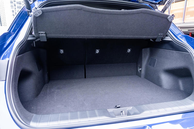 Keys fit nicely next to the middle cupholder, and each door card will swallow a full-size drink bottle. A wireless charging pad is situated under the centre stack, angled downward to prevent your phone from turning into a projectile during enthusiastic driving.
