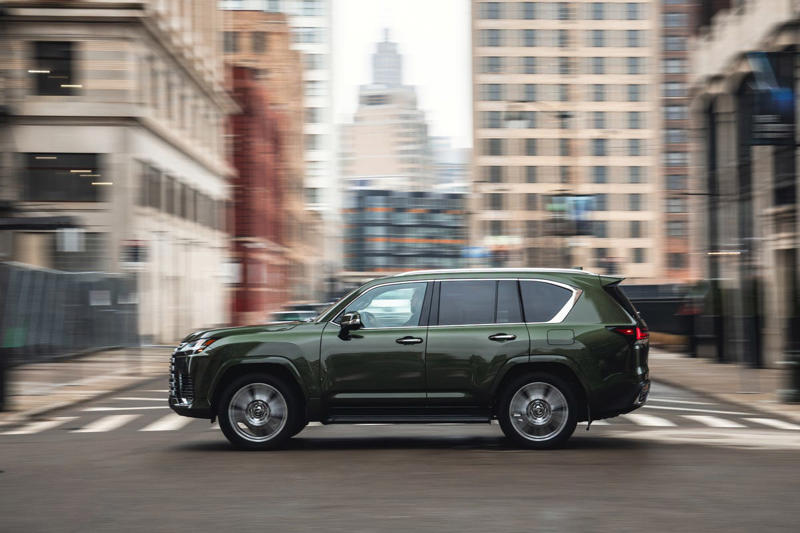 This hybrid powertrain hardware is much the same as that in the latest-generation Tundra and Sequoia. One interesting element is that Lexus built a waterproof case for the hybrid battery, with a water-detection system and cooling facilitated by the rear air conditioning.