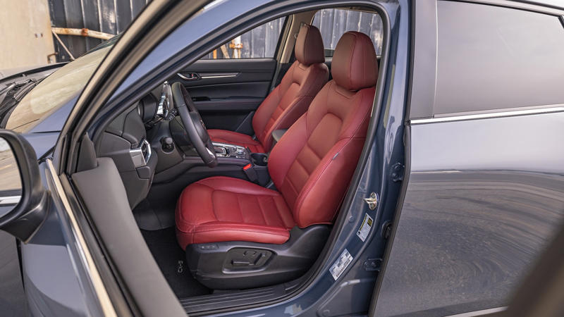 There’s nothing shockingly impressive about the CX-5’s interior, but that’s fine because it gets nearly everything right. The Carbon Edition-exclusive red leather seats strike a nice balance between plush comfort and appropriate bolstering. The driver’s seat has a bonus power-adjustable lower back support, which should come in handy on longer drives.