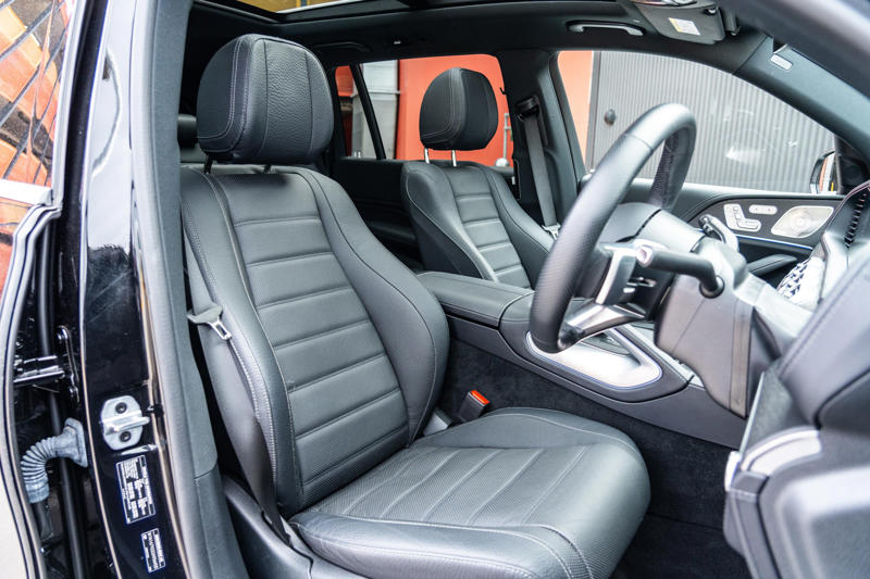 You’ll notice the upholstery in our tester is a more standard grained leather rather than smoother Nappa hide, which on first glance doesn’t feel worthy of the GLS450d’s near-$200,000 price tag. Nappa upholstery optional.