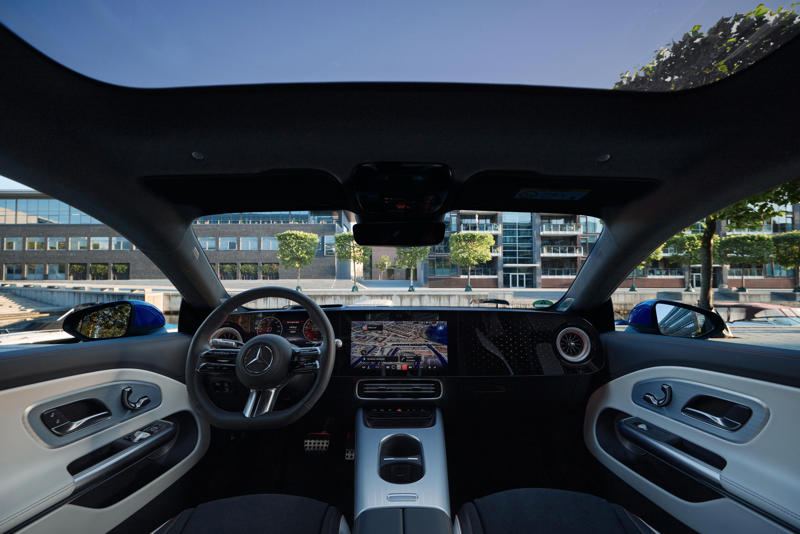 As well as the expected electronic safety systems – adaptive cruise, lane-keeping steering with a new automated lane change, blind-spot monitoring, etc – the CLA also gets a new central front airbag to prevent head-to-head impact injuries between the two front-seat occupants, and a dedicated crush structure designed to protect the battery in the event of a crash.