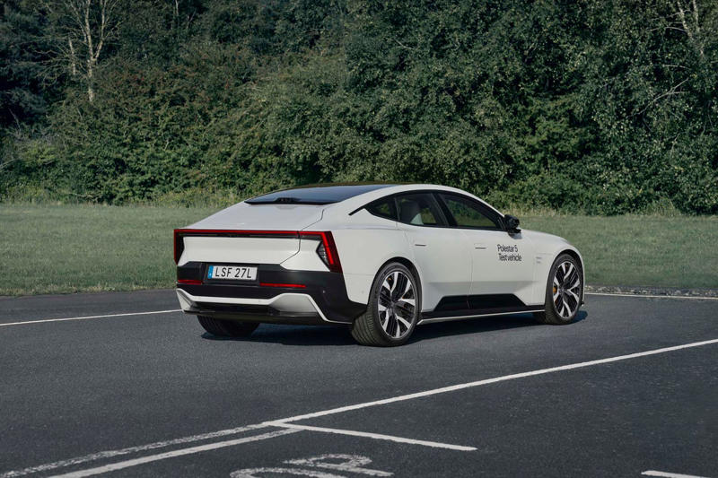 It's also chock-full of interesting design details such as a huge glass roof, solid sheetmetal where the rear window normally appears, and a front face identified by Polestar's twin hockey-stick headlight bars. With a 0.24 drag coefficient, the elegant Polestar 5 is the complete opposite of the trendy butch SUV look.