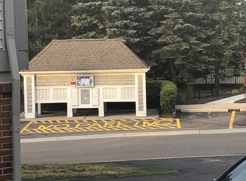 “Maintenance guy from the property management company I work at painted this at a luxury condo association without using letter stencils.”