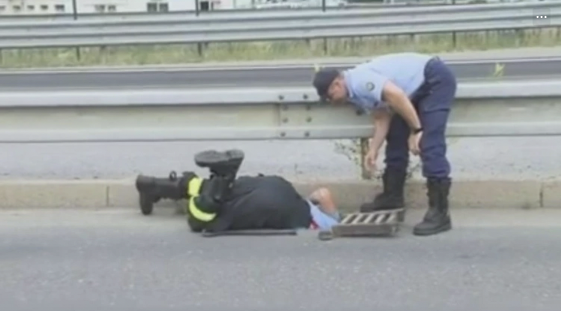 “He has his whole body underneath a loading dock ramp.”