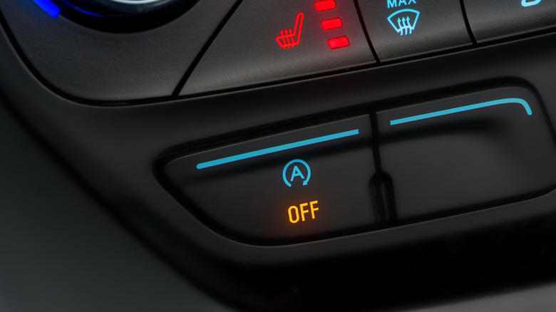 A Close Up Of An Auto Start-Stop Disable Button On Vehicle Dashboard