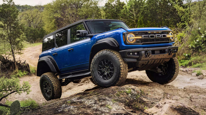 blue 2025 Ford Bronco in dry river bed