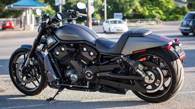 A V-Rod Night Special bike parked across the street