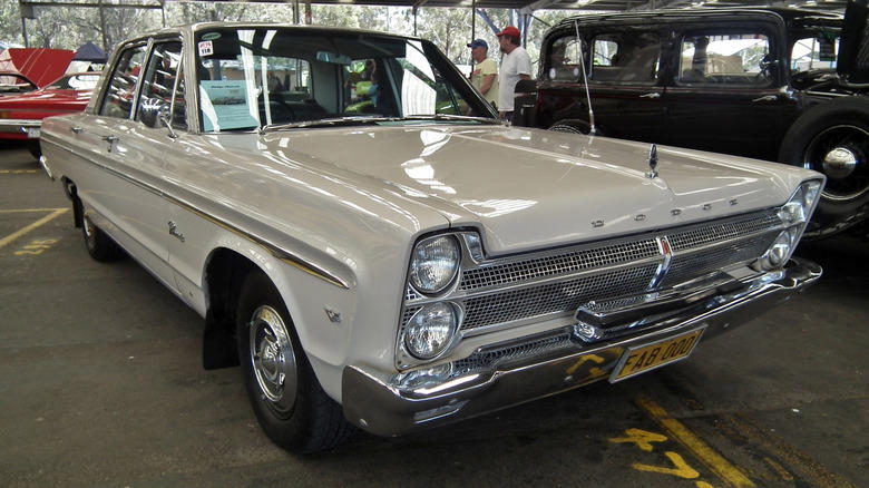 The 1965 Phoenix is almost the opposite of that 1949 Wayfarer when it comes to its shape. The Phoenix opts for straight lines, whether that be the hood, the top of the car, or the metal stripe that goes down each side of the vehicle. The straight line aesthetic extends to the car's grille as well. The entire thing is a tight-knit collection of a ton of vertical and horizontal lines that looks like a true grate for air rather than anything sleek. That bluntness pairs so well with all the straight lines of the rest of the vehicle. The other interesting design piece is the decision to stack two lamps on top of each other for each side of the headlights, rather than have them next to each other like the Custom Royal or Polara had. It makes the car feel taller and more impressive, giving the front an extended vertical line to be perpendicular to all the horizontal straight lines. The 1965 Dodge Phoenix is an underrated gem.
