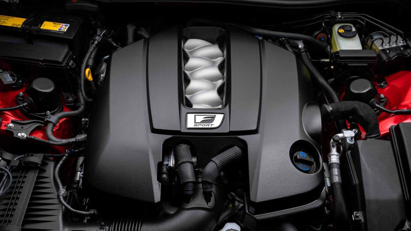 The 467-horsepower version of the 5-liter V8 from the RC F, as well as various supporting systems and technologies, were applied to the Lexus GS the following model year, in 2016. The resulting GS F packed supporting upgrades to its brakes, cooling aerodynamics, suspension, and chassis to support the added power.