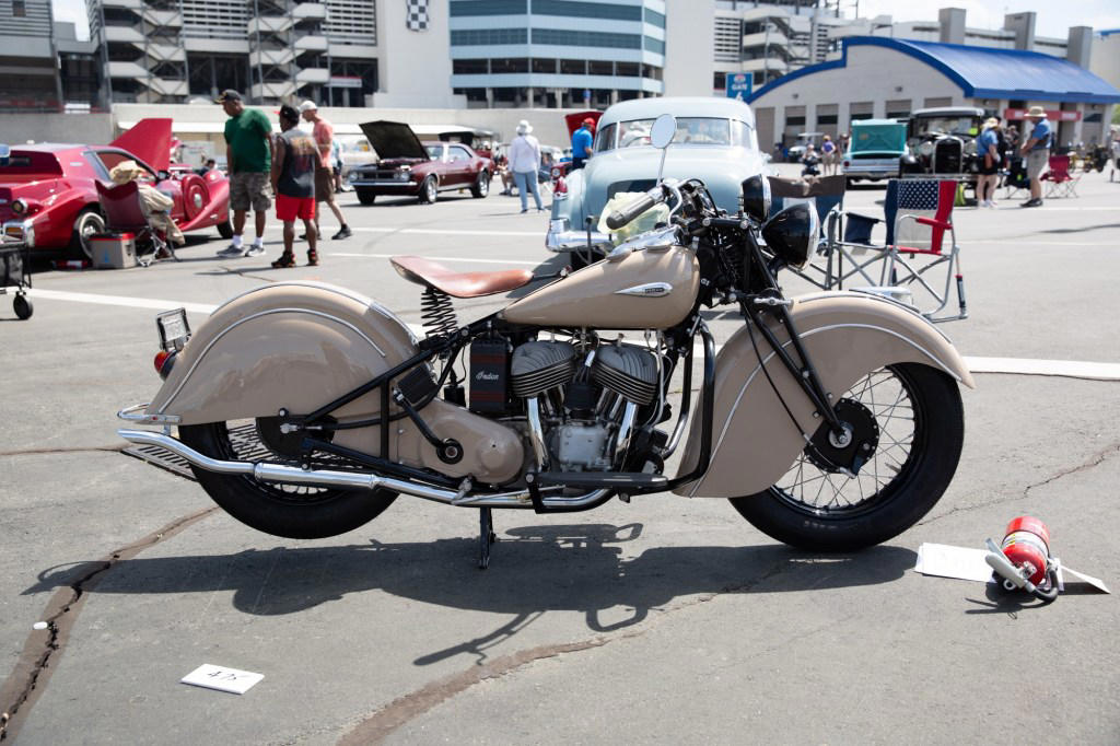 Art Delor’s 1940 Indian Sport Scout, in town for its First Junior award, looked to be about several times the scale of the Brockhouse Papoose, which also wore the storied Indian name on its gas tank.