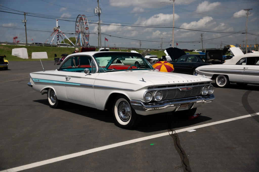 There is no mistaking the simple and elegant lines of this 1961 Chevrolet Impala Sport Coupe. This example looked particularly striking with blue spear complementing the blue cloth and vinyl interior.