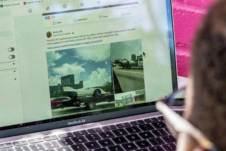 Car enthusiast Marcel Robertson identifies his favorite post, a Porsche 917, as he discusses his administration role in the Facebook discussion group, Houston Area Car Spotters, in Houston, Tuesday, June 17, 2025. (Kirk Sides/Houston Chronicle)