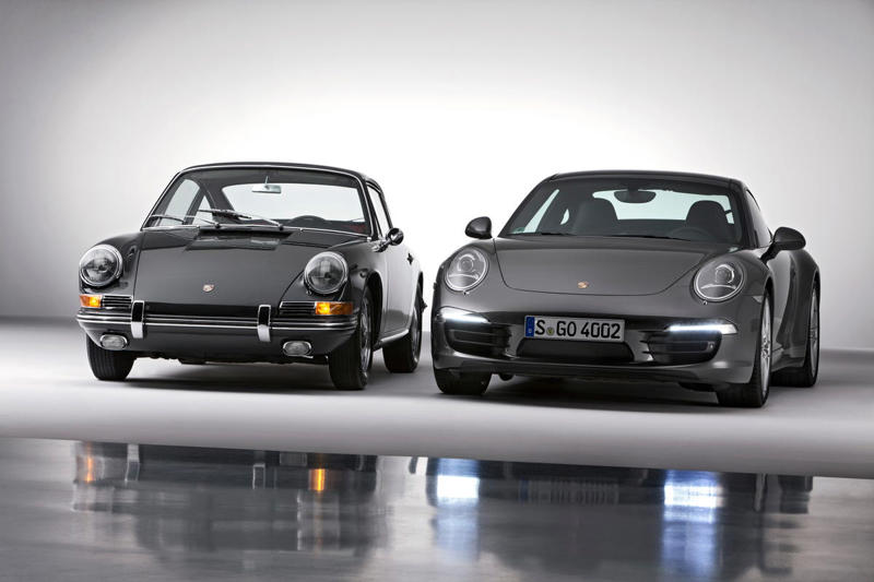 Original Porsche 911 next to Porsche 911 Carrera 4S Coupé (991) in 2018.