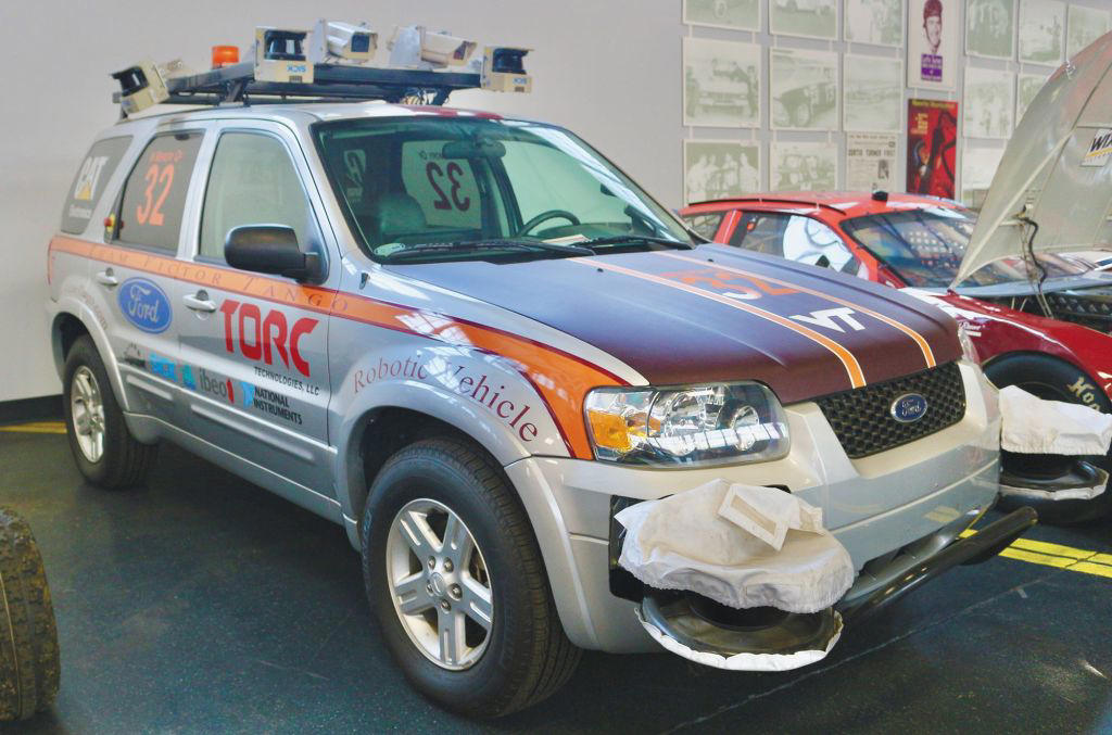 The self-driving car favored by the students came about from an Urban Challenge issued by DARPA (the Defense Advanced Research Projects Agency of the U.S. Department of Defense) to develop a self-driving car that could operate in an urban environment. The robotics students at Virginia Tech entered the competition using a pair of 2005 Escape Hybrids that Ford donated to be heavily modified. And modify they did. The students outfitted the car with a custom drive-by-wire system and computers, laser scanners, cameras, and a global positioning system to identify obstacles, cars, and roads on the course at George Air Force Base in Victorville, California. Virginia Tech came in third in the elite competition, behind only Carnegie Mellon and Stanford.