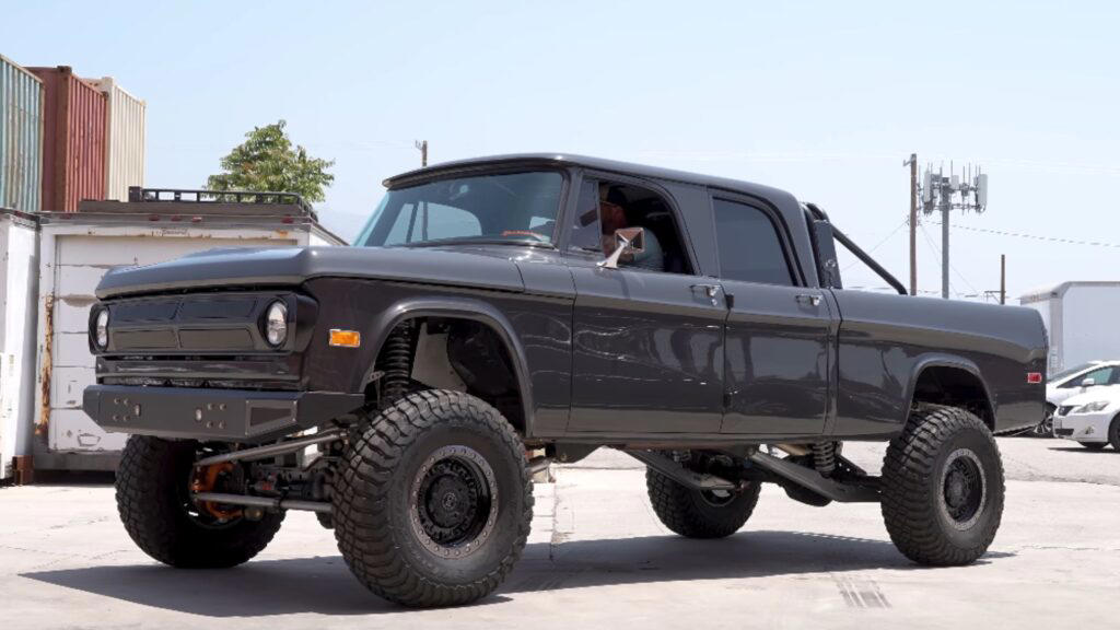 The Hellcat used in this Dodge was donated by a 2020 Jeep Trackhawk, tuned to make about 750-horsepower. That engine works with an HP95 transmission from a Ram TRX and a Jeep Wrangler Rubicon transfer case. In other words, this thing is a Mopar Frankenstein and it works beautifully, roasting tires and taking on dirt like a pro.