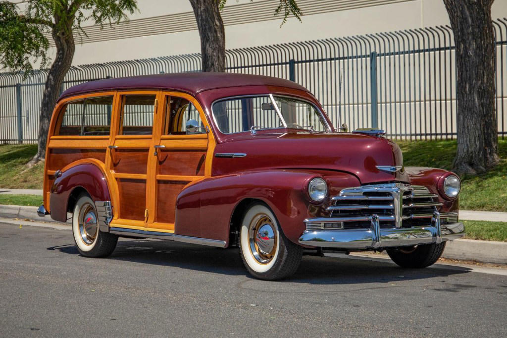 1948 Chevrolet Fleetmaster Station Wagon, woodie, parked on the street, front quarter view
