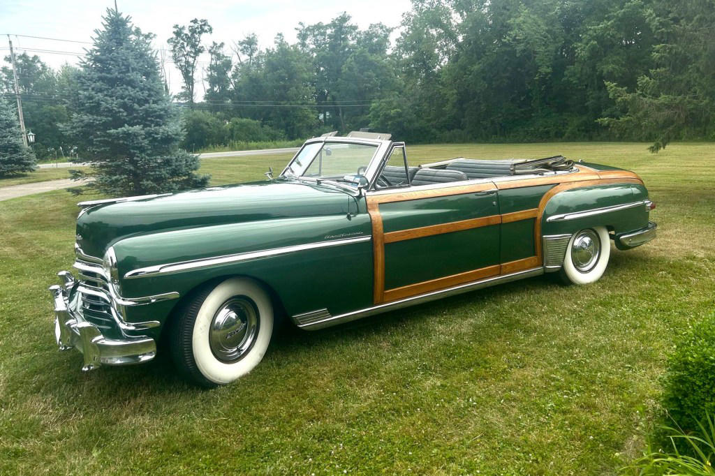 1949 Chrysler Town & Country Convertible parked on grass, top down, side view
