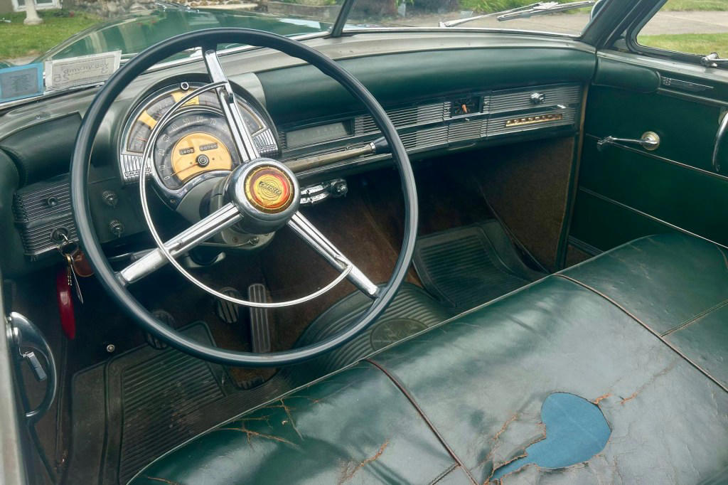 1949 Chrysler Town & Country Convertible interior showing steering wheel and dashboard