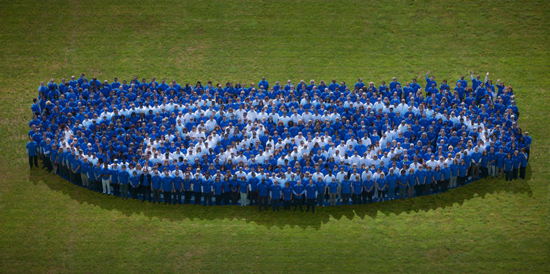 To mark the return of the Ford Blue Oval and Ford Motor Company being lifted to investment grade status, Bill Ford, Jr. joined over 1000 Ford employees outside of Ford World Headquarters in Dearborn, Mich. on May 22, 2012, to form a human Blue Oval with blue and white t-shirts.