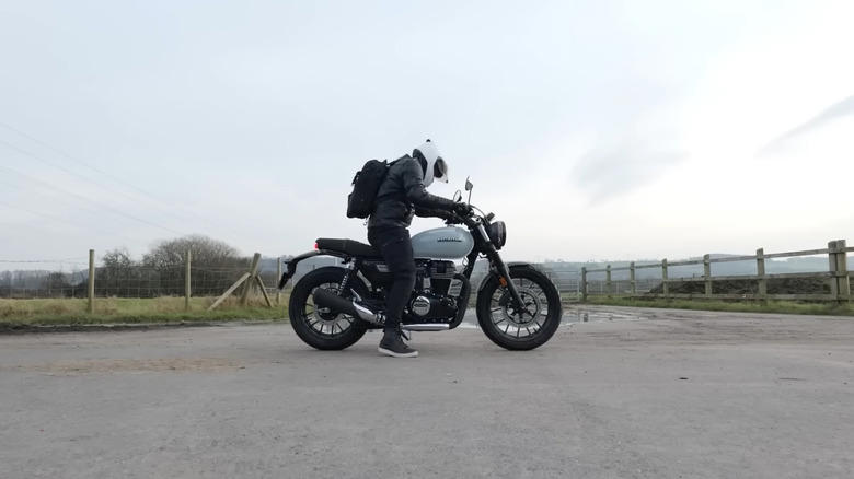 Honda GB350S rider mounting bike