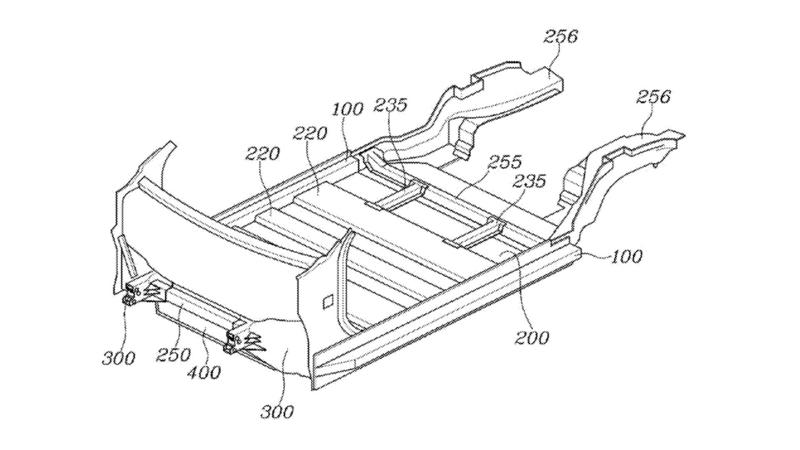 The patent application in question, which was published by the United States Patent and Trademark Office on November 14, explains that vehicle bodies and battery assemblies are currently manufactured separately, and then brought together during assembly, however, the “space where panels, etc. overlap is excessive, making it impossible to efficiently use a limited space of the vehicle, and thus having to mount a small amount of battery cells thereon, resulting in reduction of a battery cruising distance.” In other words, by using space more efficiently, engineers can fit more battery capacity into a vehicle, improving the electric driving range.