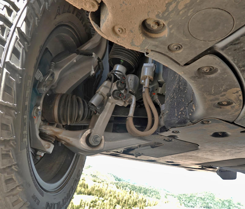 Regardless of impressive wheel travel for four-wheel independent suspension, the R1S and R1T need “lockers” in the motors to overcome wheel spinning while off-roading. Michael Teo Van Runkle