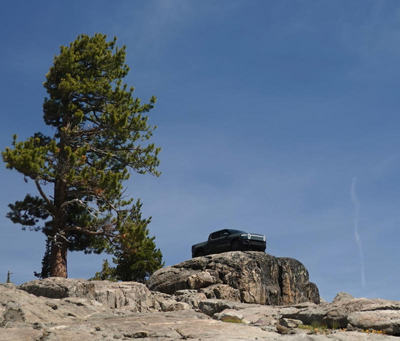 To ensure everybody on hand understood the absurdity and lightheartedness of a feature that maybe 1 percent of 1 percent of all Rivian customers will ever actually use, I kept hollering “Do a kickflip!” But then, a brief trail drive revealed exactly how useful Kick Turn can actually be while traversing tight switchbacks or negotiating the space between two trees. So on the drive down from Donner Pass, while searching for a deserted stretch of road to serve as my makeshift drag strip, I started to ponder the Gen 2 Quad more seriously—for Rivian, for customers, and for the EV industry as a whole.