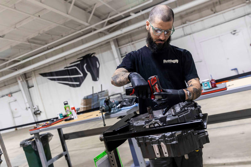 Engines are assembled at Buell Motorcycle in Cascade Township on Thursday, May 29, 2025. The West Michigan manufacturer is expanding and projecting significant growth with a new motorcycle launch this fall.