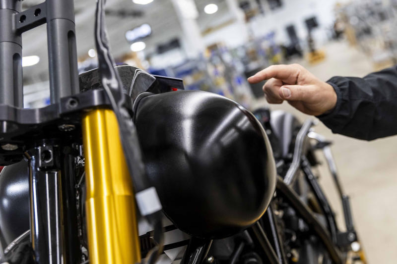 A Super Cruiser test bike is assembled at Buell Motorcycle in Cascade Township on Thursday, May 29, 2025. The West Michigan manufacturer is expanding and projecting significant growth with a new motorcycle launch this fall.