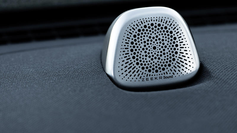 The in-house developed sound system takes inspiration from premium Bowers & Wilkins units, even down to the dash-mounted tweeter, although Zeekr also offers additional speakers that are mounted in the headrests for truly immersive sound.