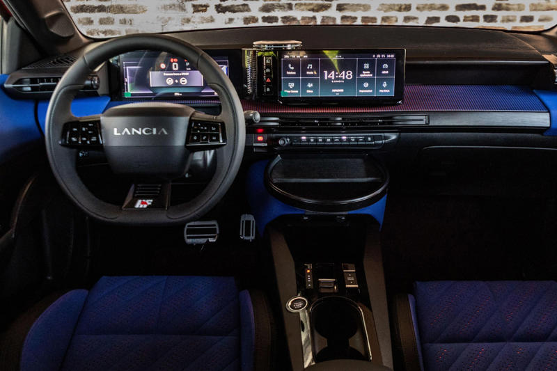 On the inside you’ll find Econyl sport seats supposedly inspired by the Delta Evoluzione, perforated leather for the steering wheel, aluminium pedals, revised graphics for the instrumentation and infotainment screens, and a dashboard top that fades from blue to orange and back again.