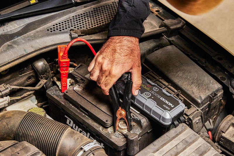 After you confirm that your battery is indeed kaput, it’s time to break out your portable jump starter. Look for the two alligator clips that will likely be in the bag your jump starter came with—one will be black, and the other will be red. These are what you’ll use to connect the jump starter to your battery. The process itself is fairly simple, but there are some safety considerations to keep in mind.