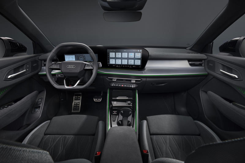 The cabin comprises a ‘soft wrap’ panel extending the full width of the windscreen, with the so-called ‘digital stage’ including an 11.9-inch digital instrument cluster and 12.8-inch curved central touchscreen.
