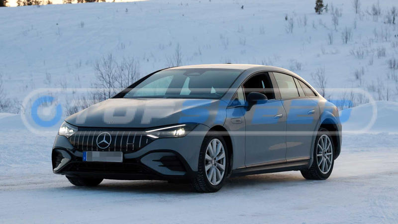 The future of electric cars at Mercedes is what you're looking at right here. Yes, it may appear to be a typical EQE AMG Line, but according to our spy photographers, it's a mule for the first electric E-Class model that will arrive after the current EQE goes away for good. Mercedes will call this new vehicle the E-Class with EQ Technology, a naming convention it will use for all of its next-gen electric cars.