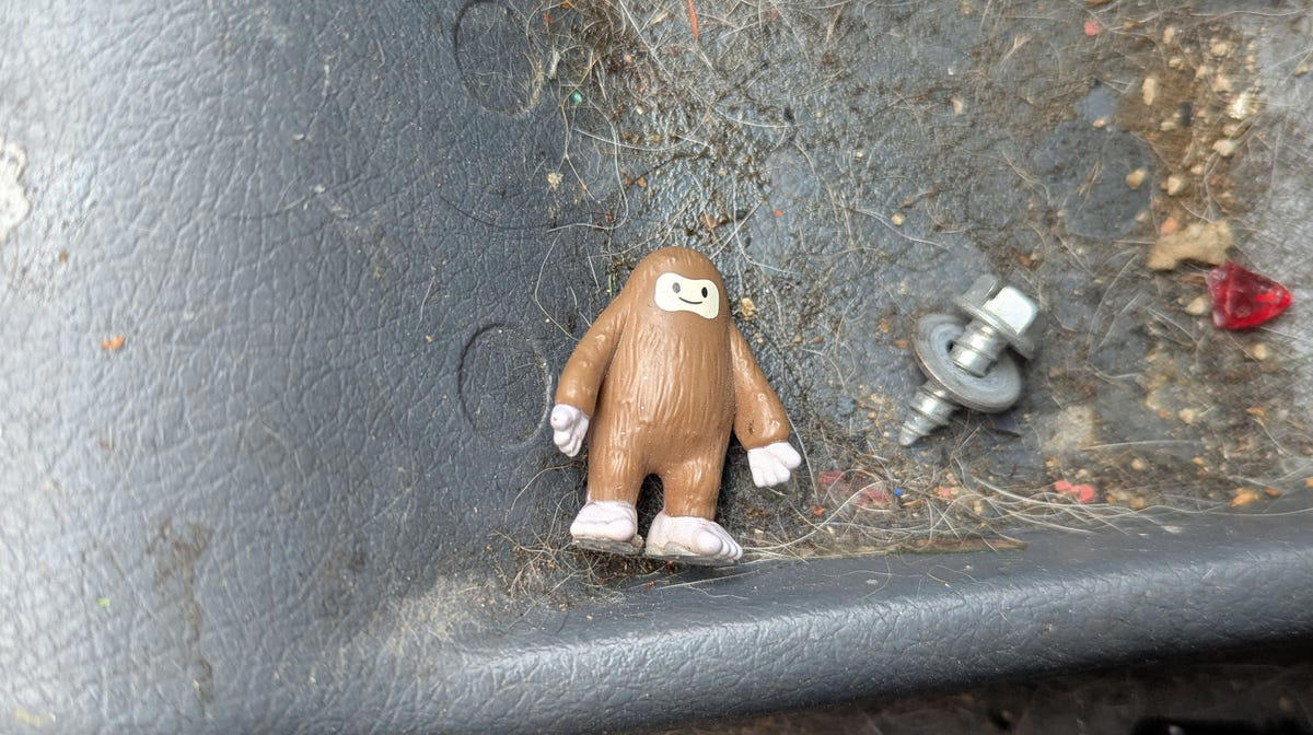 I found this little Sasquatch figurine in the Firefly's center console, so I took it home as a junkyard souvenir.