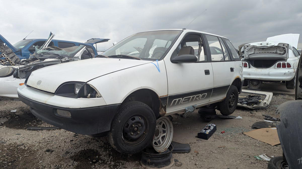 Then, on Monday, I found one apiece white 1990 and 1997 Geo Metros at the same Denver wrecking yard. As examples of the first and last model years of the Geo Metro, they are a good way of illustrating the story of the cheapest vehicle in GM's short-lived brand.