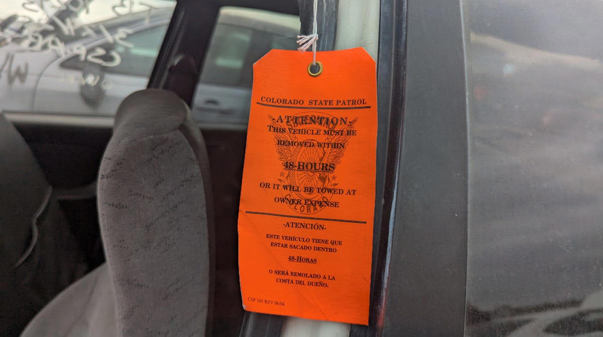 This red tag from the Colorado State police for being abandoned at an Interstate 70 rest area suggests the former theory.