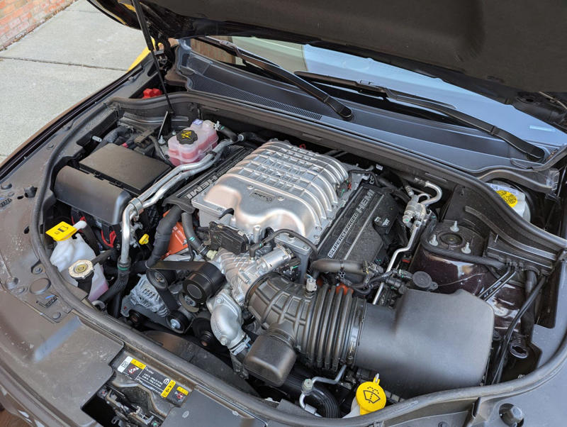 The Hellcat is also as useful as the regular Durango, as long as the gas budget is high. With the suspension and drive modes in their laziest settings it was a perfectly relaxed cruiser, although I found it near impossible not to be tempted to press the throttle a little deeper to get a taste of the supercharger each time I left a stoplight. Every drive is simply an event, whether you're catching the keen eye of a fellow enthusiast at a light with the low-key Hellcat badge on the fender or finding peace by disappearing a long highway on-ramp. I could not help but love driving this ridiculous vehicle.