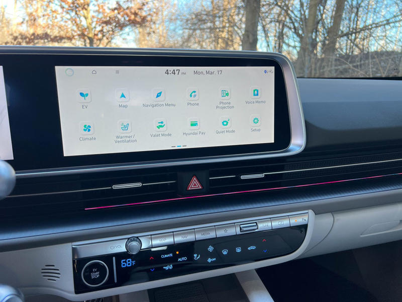 Charging, an area where the Hyundai Group's EVs typically excel, went fine. I saw more than 220 kW of fast-charge power even at chilly outside temperatures. That's below the claimed maximum of 350 kW, a peak figure that depends on multiple favorable conditions, but still fast enough to minimize the stress of public charging.