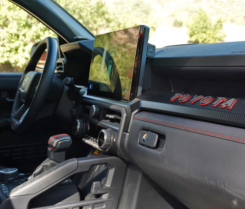 On the other hand, similar to the Tacoma and Land Cruiser, the wider-than-wide hood seriously ruined visibility over the trails. And Toyota’s incessant safety warnings that ding constantly often pulled up the wrong camera angles just at the wrong time. But as I adjusted to the dynamics and software, I discovered a bunch of trucks that can go just about anywhere within reason—especially with the up-spec control arms, dampers, and skids thrown in for good measure.