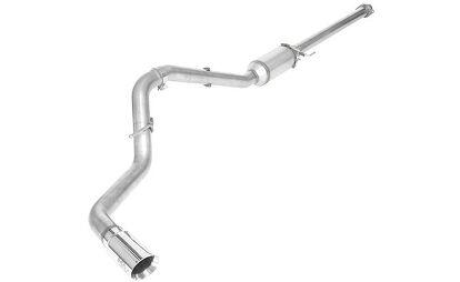 aFe's ATLAS series exhaust boasts a four-inch diameter through the piping with an even larger exhaust tip. That large pipe, along with smooth mandrel bends, means maximum flow for your engine, even if you have aftermarket performance modifications like more boost from your factory turbochargers or an aftermarket system that helps move even more air. It uses factory hangars for an original-equipment fit and has a 21-inch muffler to help it reduce high-pitched tones and give it a more powerful sound.