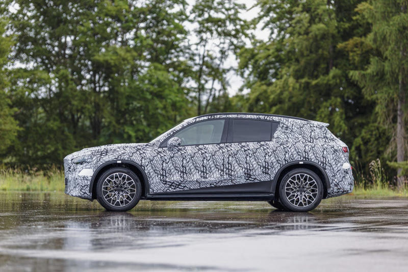 Both single-motor rear-wheel-drive and dual-motor all-wheel-drive models are under development, with my drive of a prototype taking place in the GLC 400 AWD version, which will carry 4Matic branding. Output is a mighty 483 hp, which is available any time you put your foot to the floor and is not blocked out behind certain drive modes.