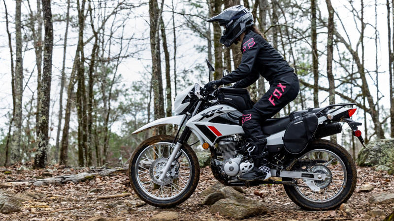 Features like an electric starter, folding footpegs for the passenger, a narrow seat, and a standard rear carrier are impressive for a motorcycle that is this affordable. Honda even goes further with a slew of accessories to make the XR150L more practical and user-friendly. These include a skid plate, hand guards, a 12V accessory socket, a tank bag, and even saddlebags. Its back-to-basics construction not only makes for an impressive beginner's bike, but it will fancy experienced riders who want to go back to enjoying the simple things in life.