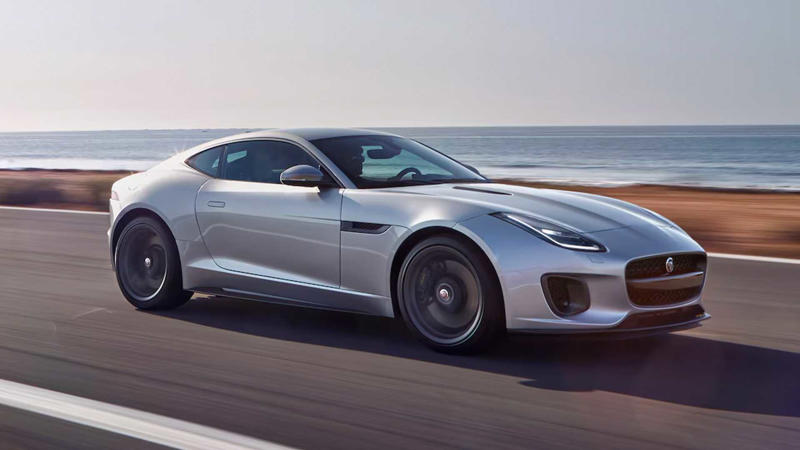 2018 Jaguar F-Type Coupe Silver Front Angled View Driving