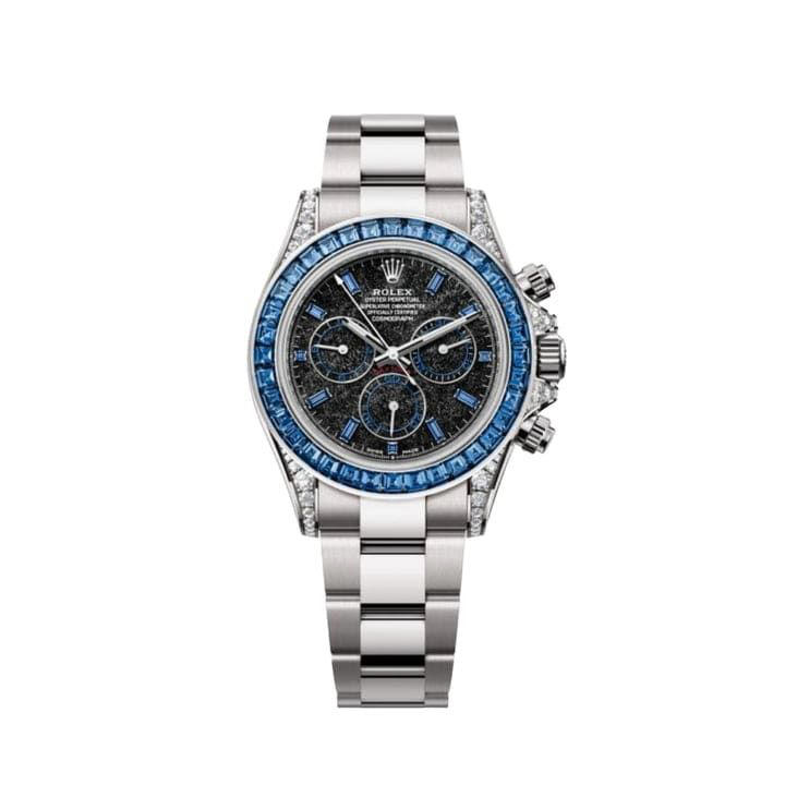 - The Blue Sapphire (ref. 126599TSA), which we saw on Roger Federer at the Laver Cup last week. The watch combines diamonds, sapphires, and an obsidian dial. This is reportedly the priciest of the bunch, with an estimated market value of $1.5 million.